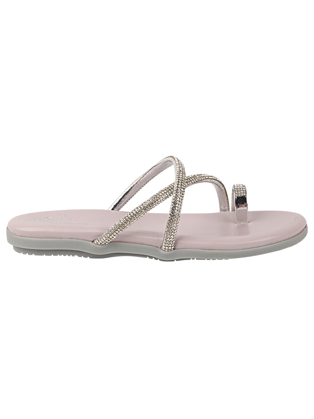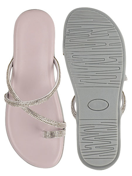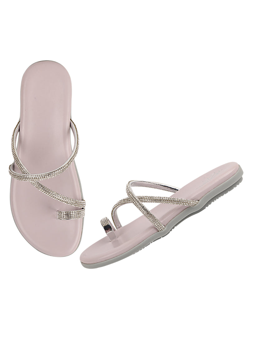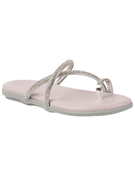 Add a hint of sparkle to your everyday look with these elegant toe-ring flat sandals. Designed with slim crystal-embellished straps and a soft footbed, they offer a perfect balance of comfort and shine for casual and festive wear.
