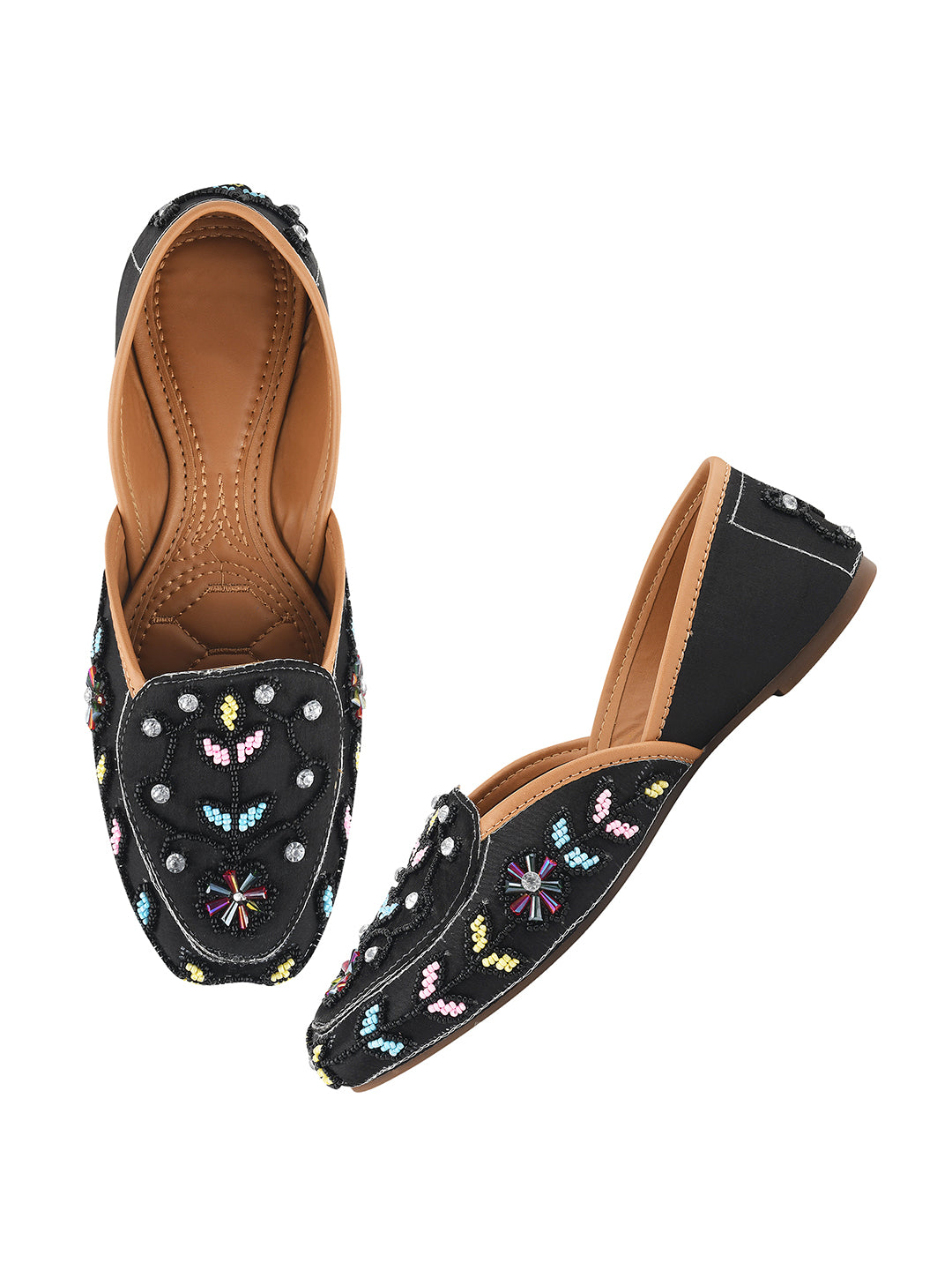 Handcrafted Zari & Stone Ethnic Wedge Juttis
