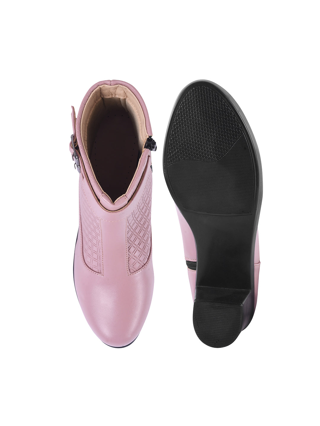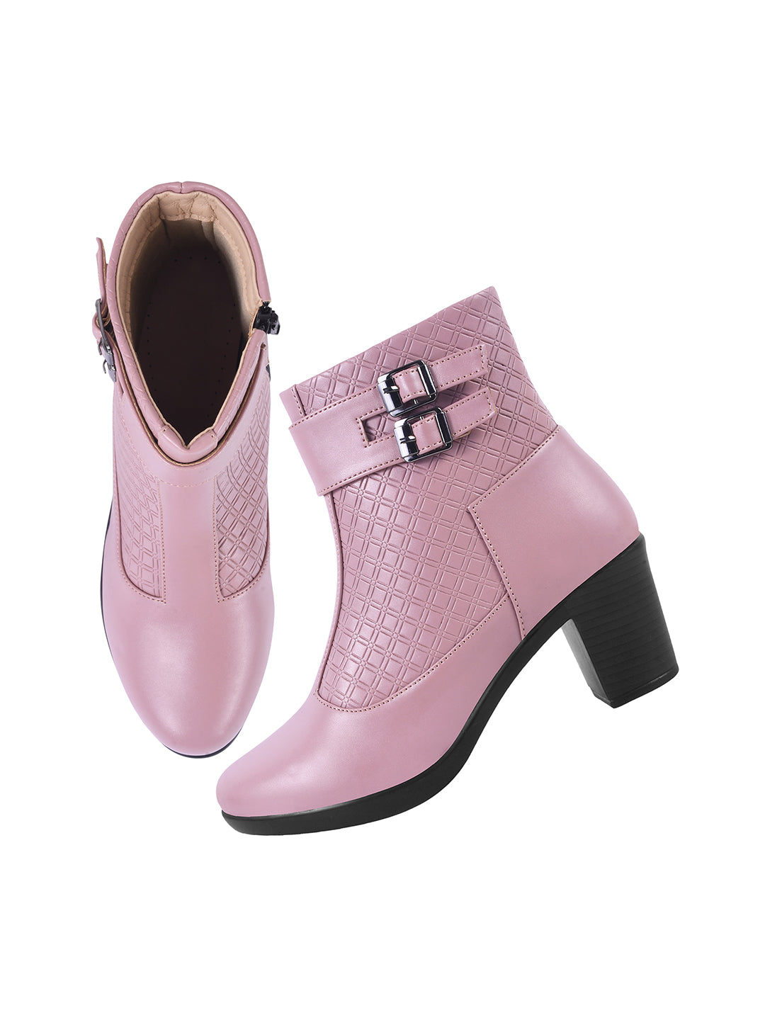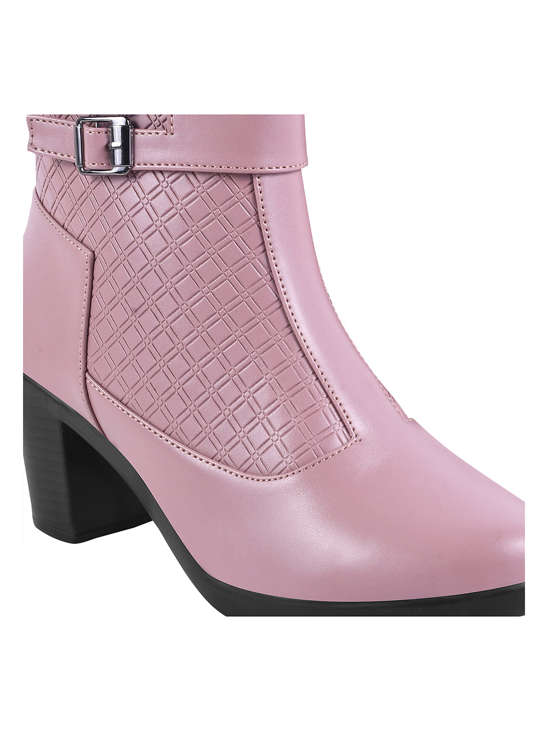 Block Heel Ankle Boots with Buckle Detail for Women