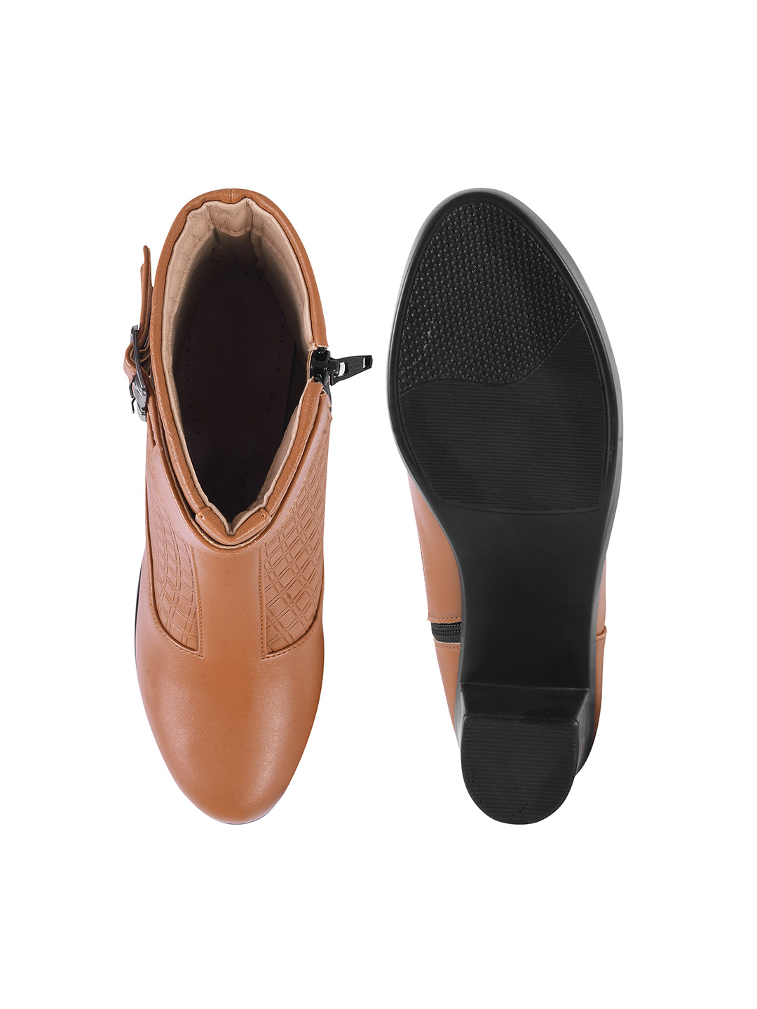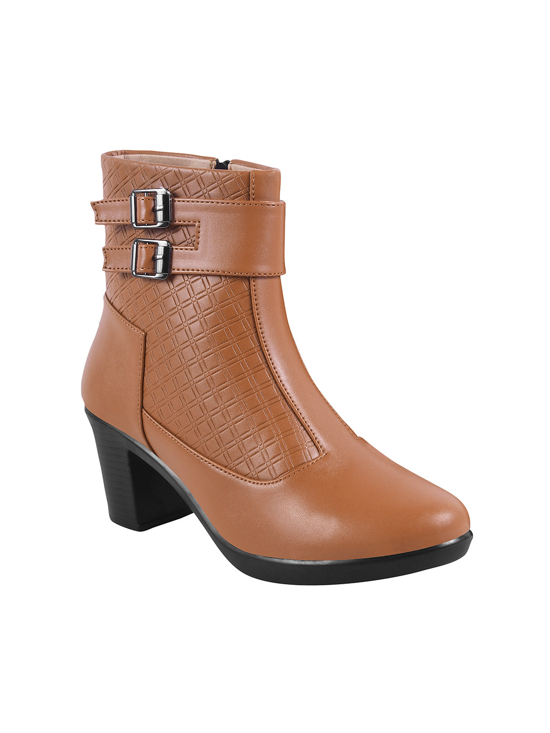 Block Heel Ankle Boots with Buckle Detail for Women