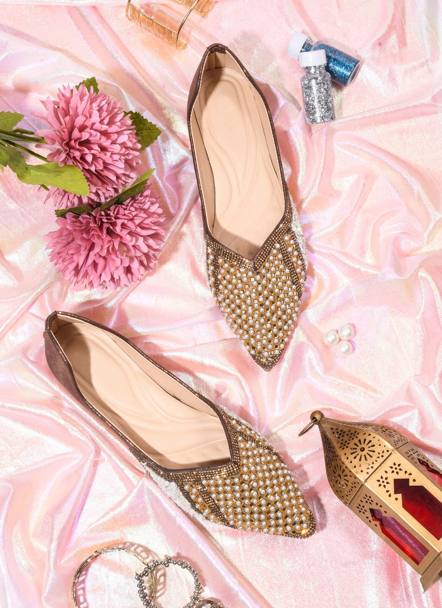 TRYME Ethnic Women's Stone Pearl Embellished Juttis
