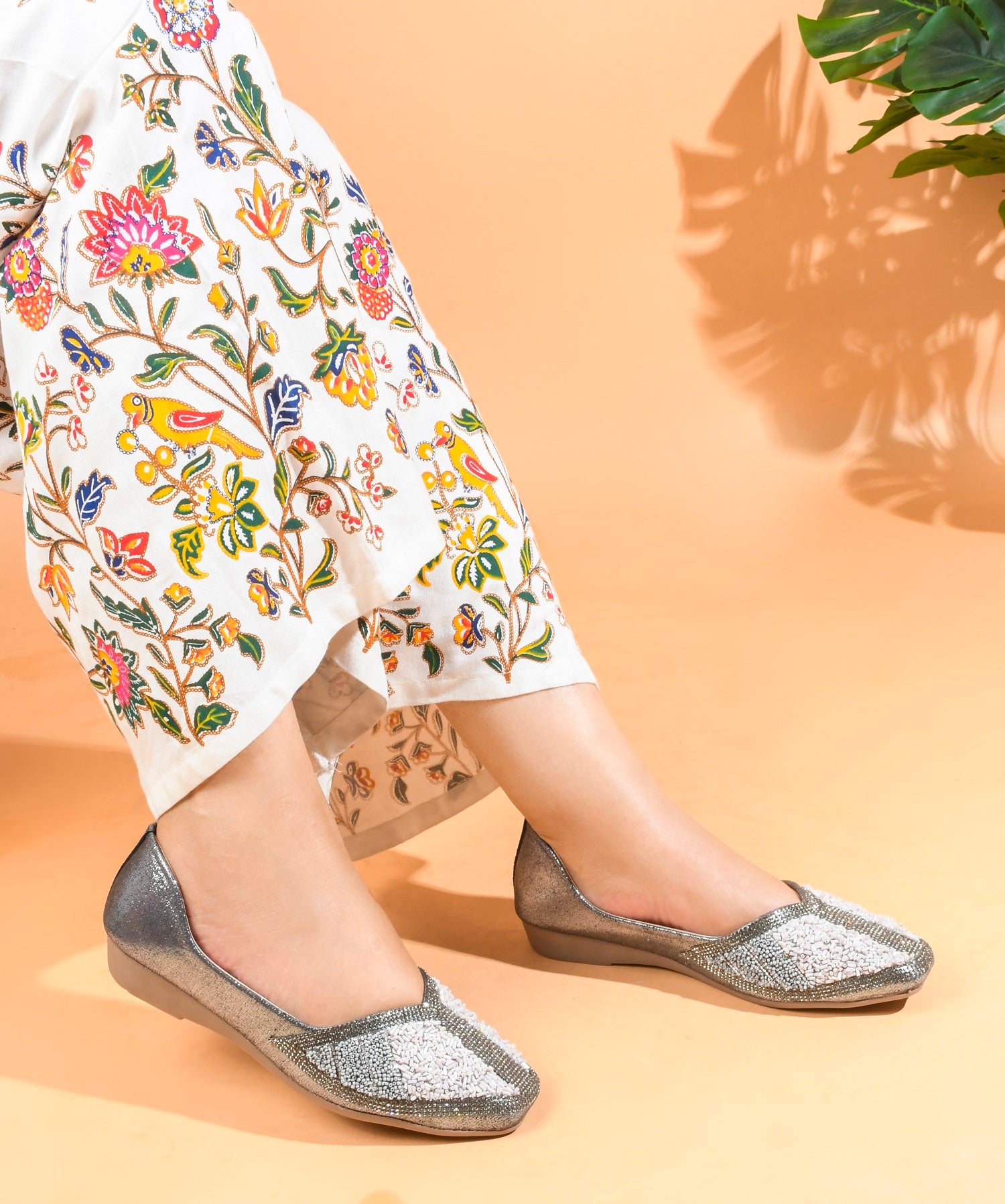 TRYME Festive Square Toe Embellished Stone Women's Juttis