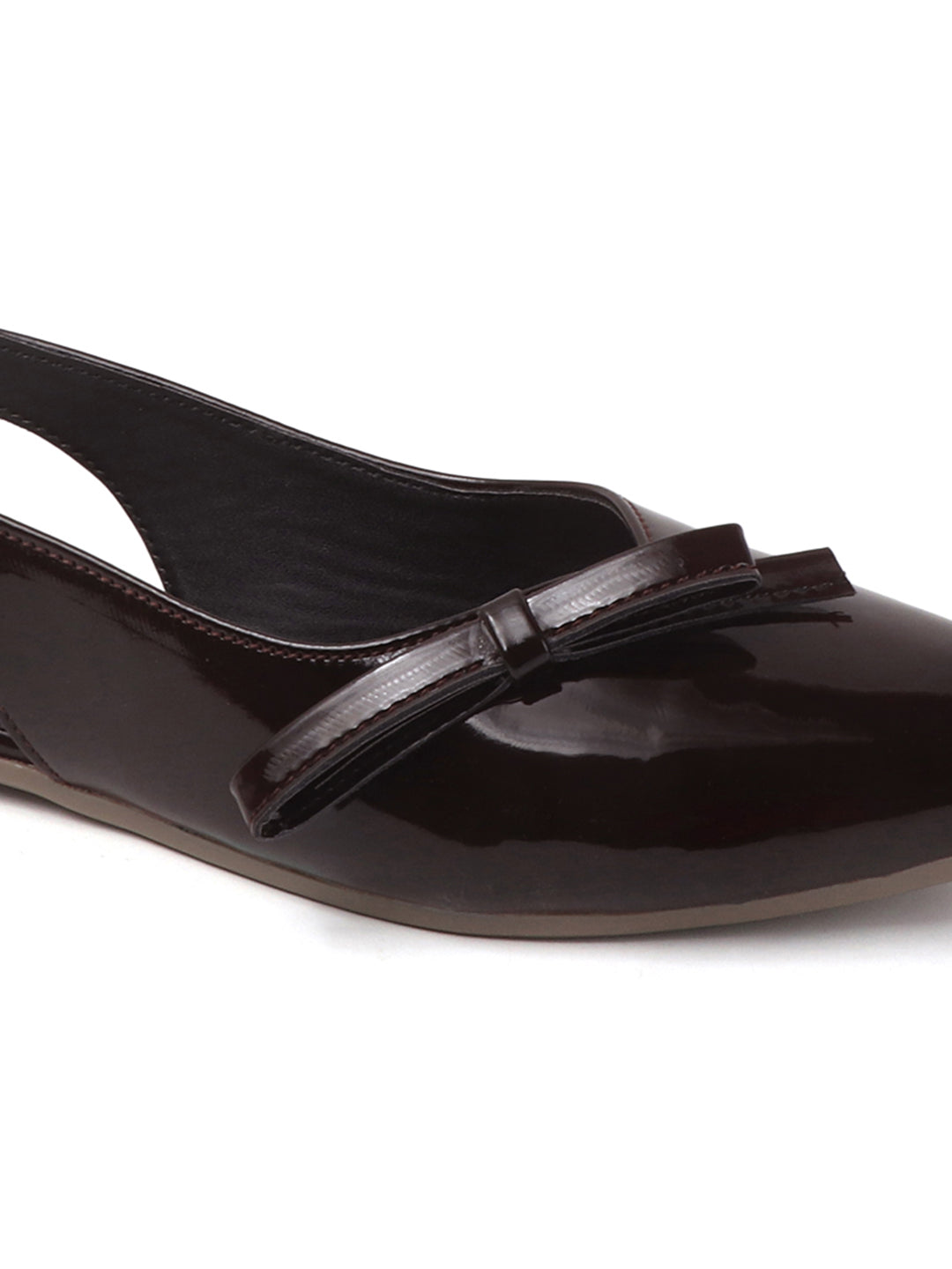 Step into effortless elegance with these patent finish slingback mules, designed with a subtle bow-tie strap and a sleek pointed toe. A versatile pair that transitions smoothly from workwear to evening looks.