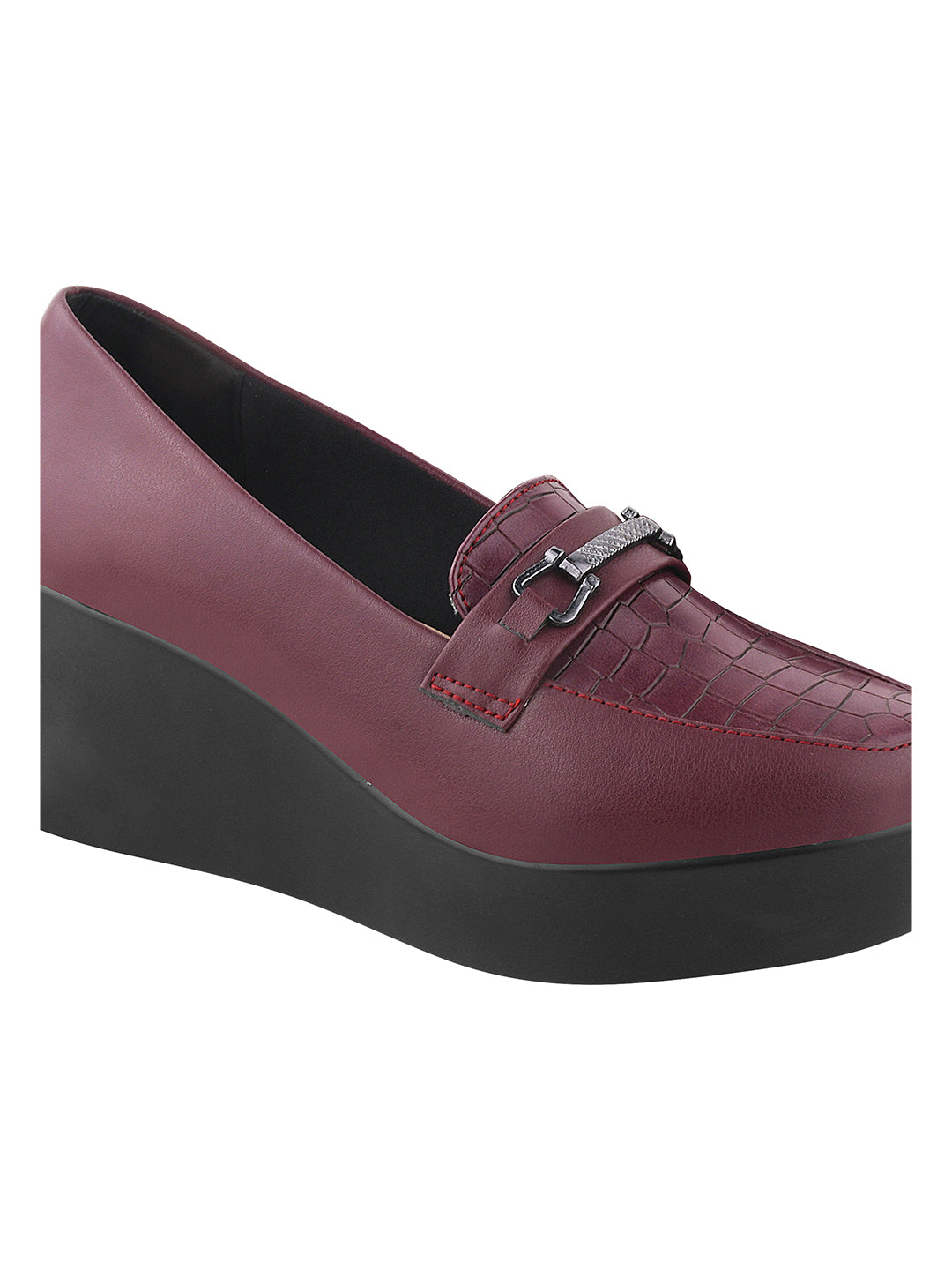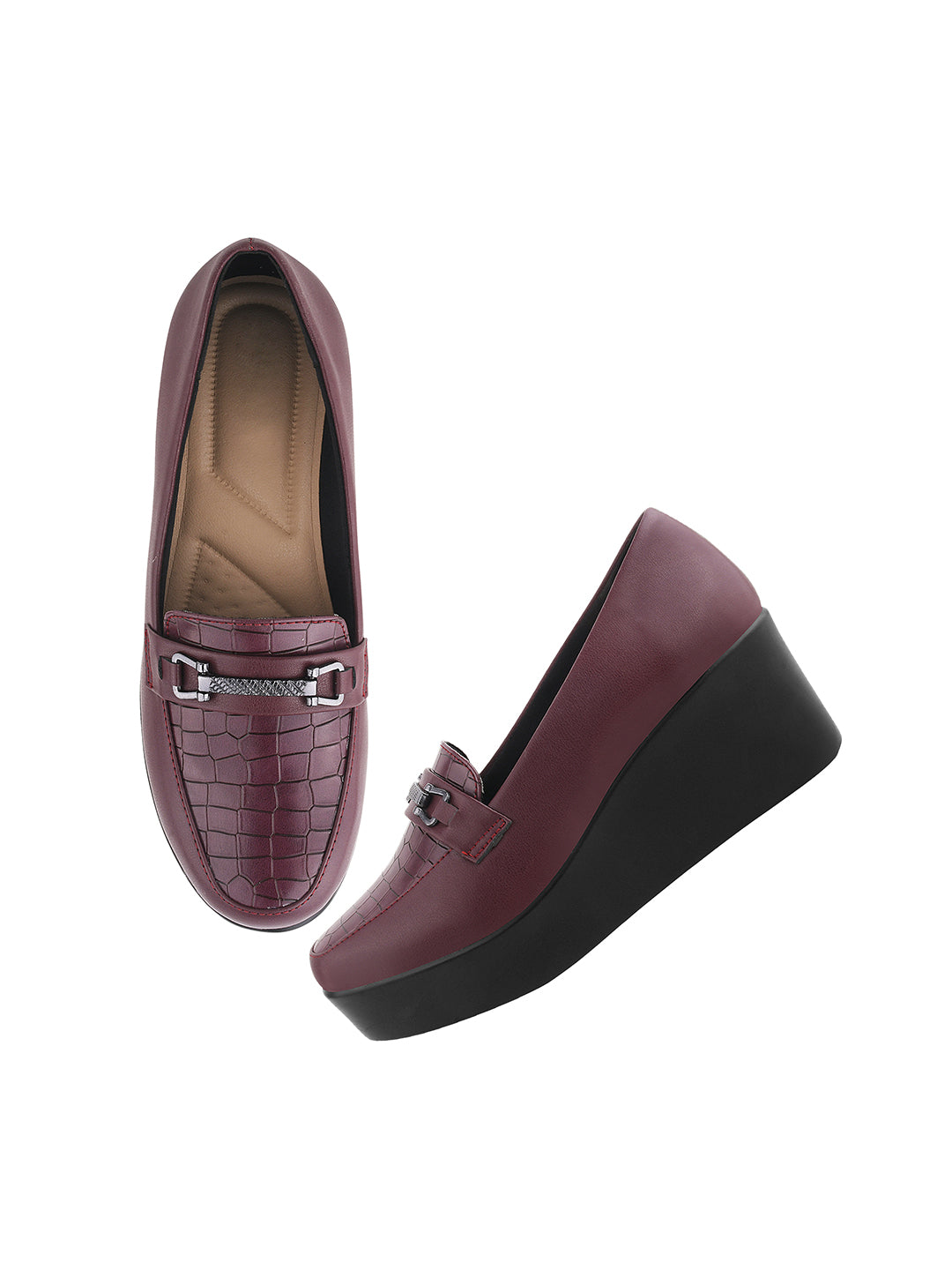 Classic Croc-Textured Office Wear Wedge Loafers