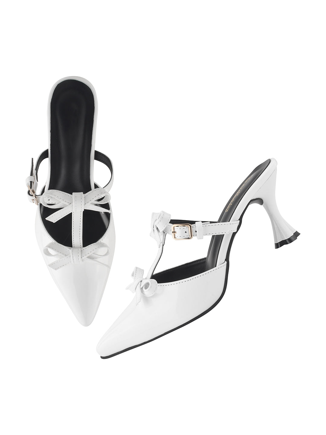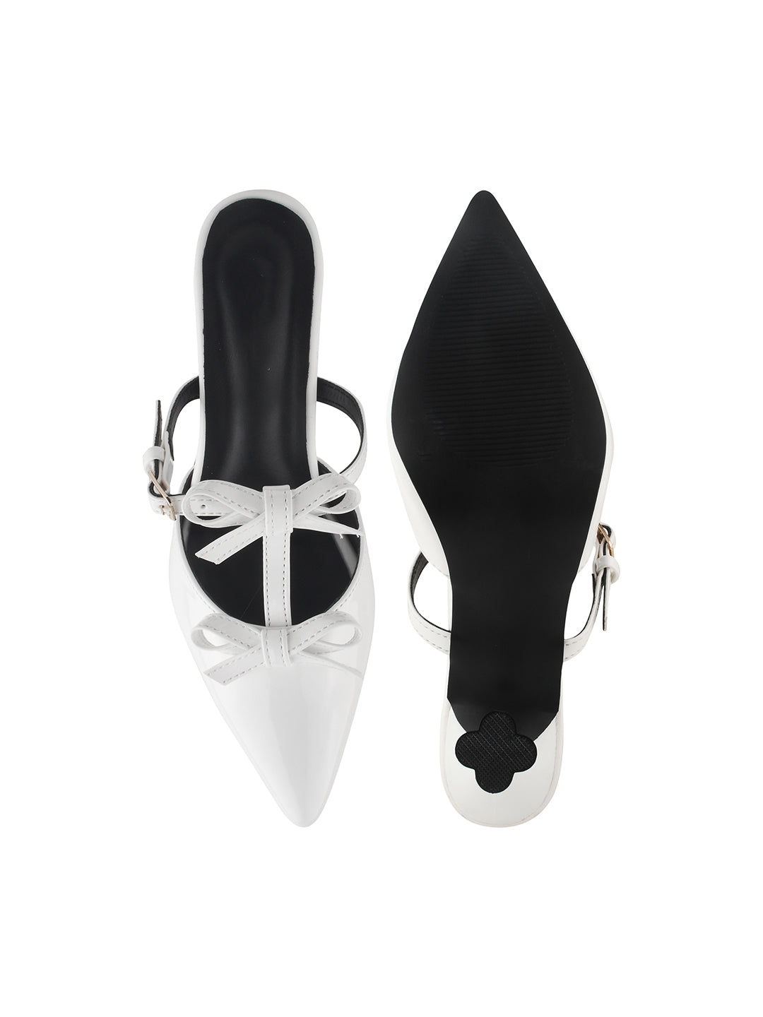 Step into timeless elegance with these glossy pointed-toe slingback heels. Designed with a sleek patent finish, feminine bow detailing, and a comfortable kitten heel, this pair offers the perfect balance of style and ease—ideal for refined everyday and evening looks.