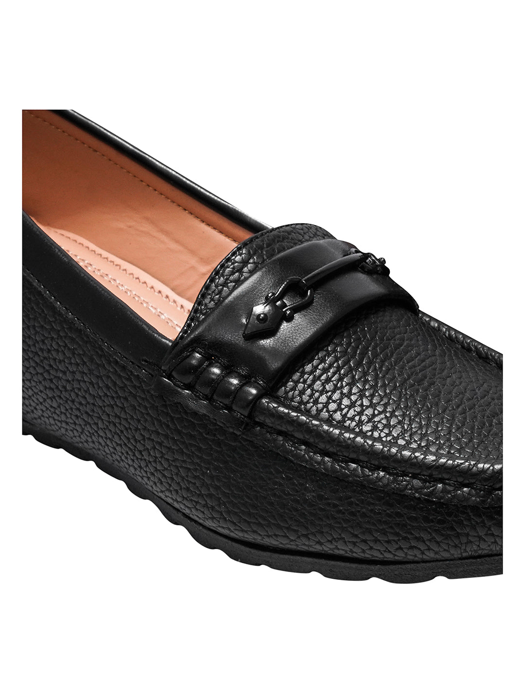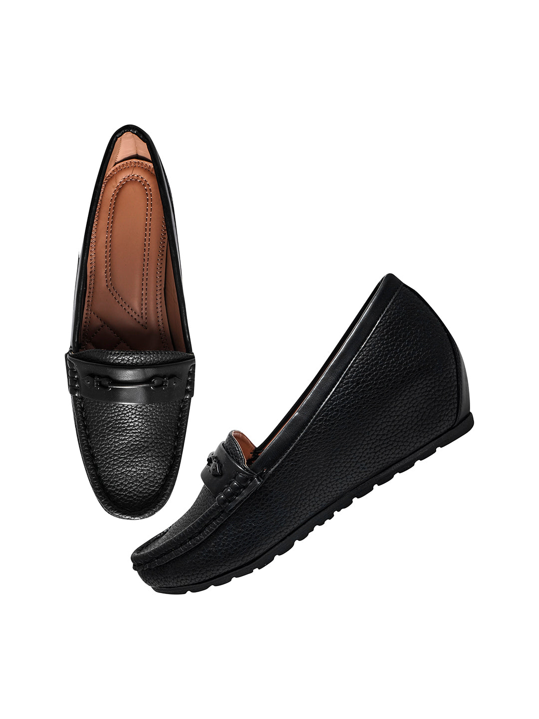 Designed for everyday ease, these textured wedge loafers offer a perfect balance of comfort and smart style. The cushioned footbed and stable wedge make them ideal for long office hours and daily wear.