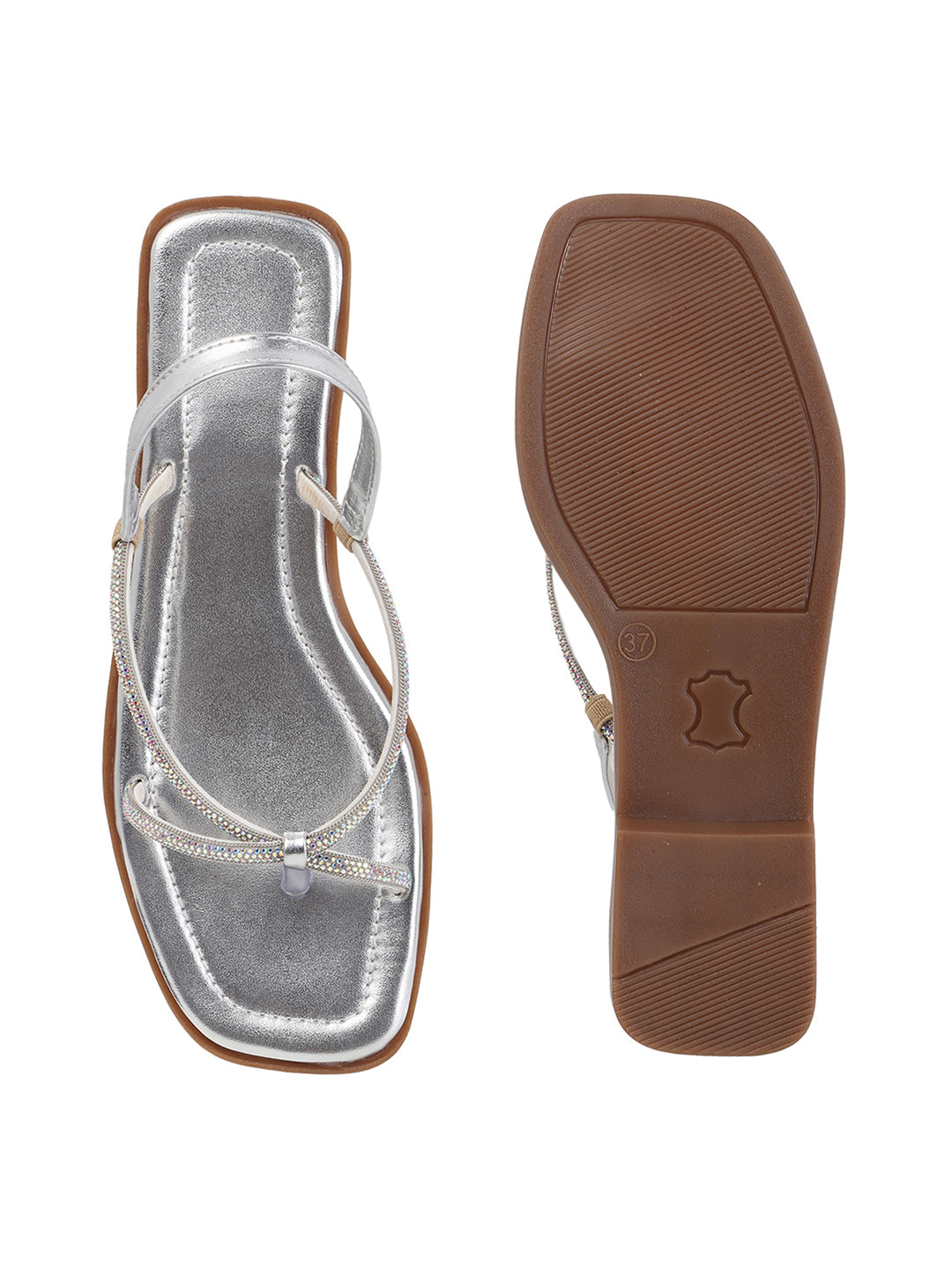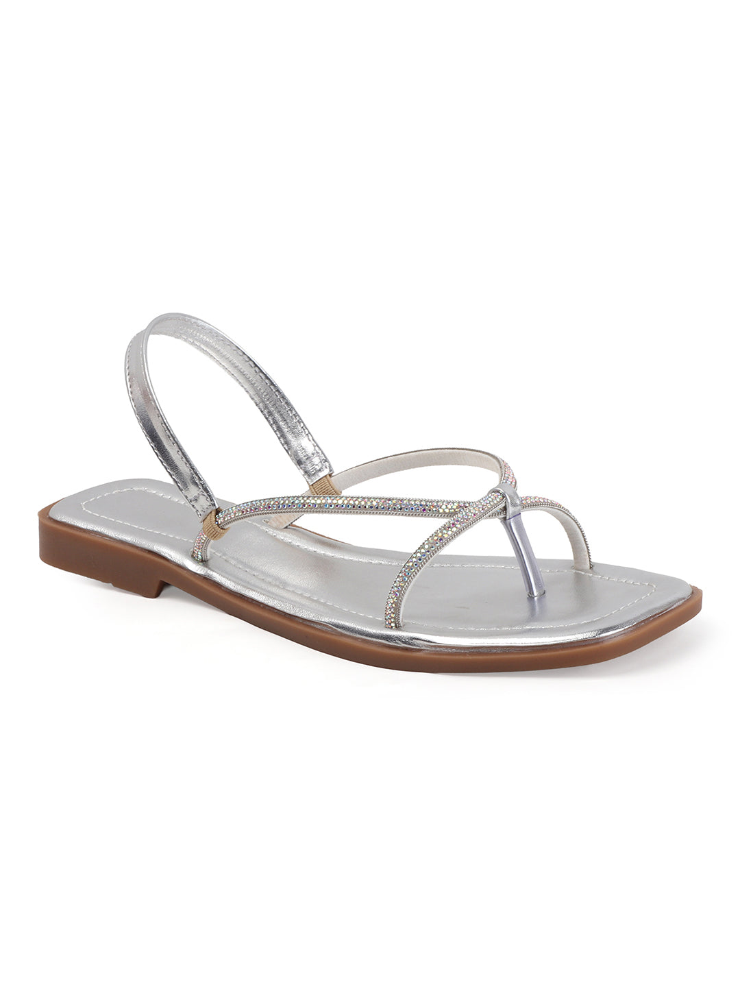 TRYME Tiny Embellished Rhinestones Slingback Flat Sandals For Women's
