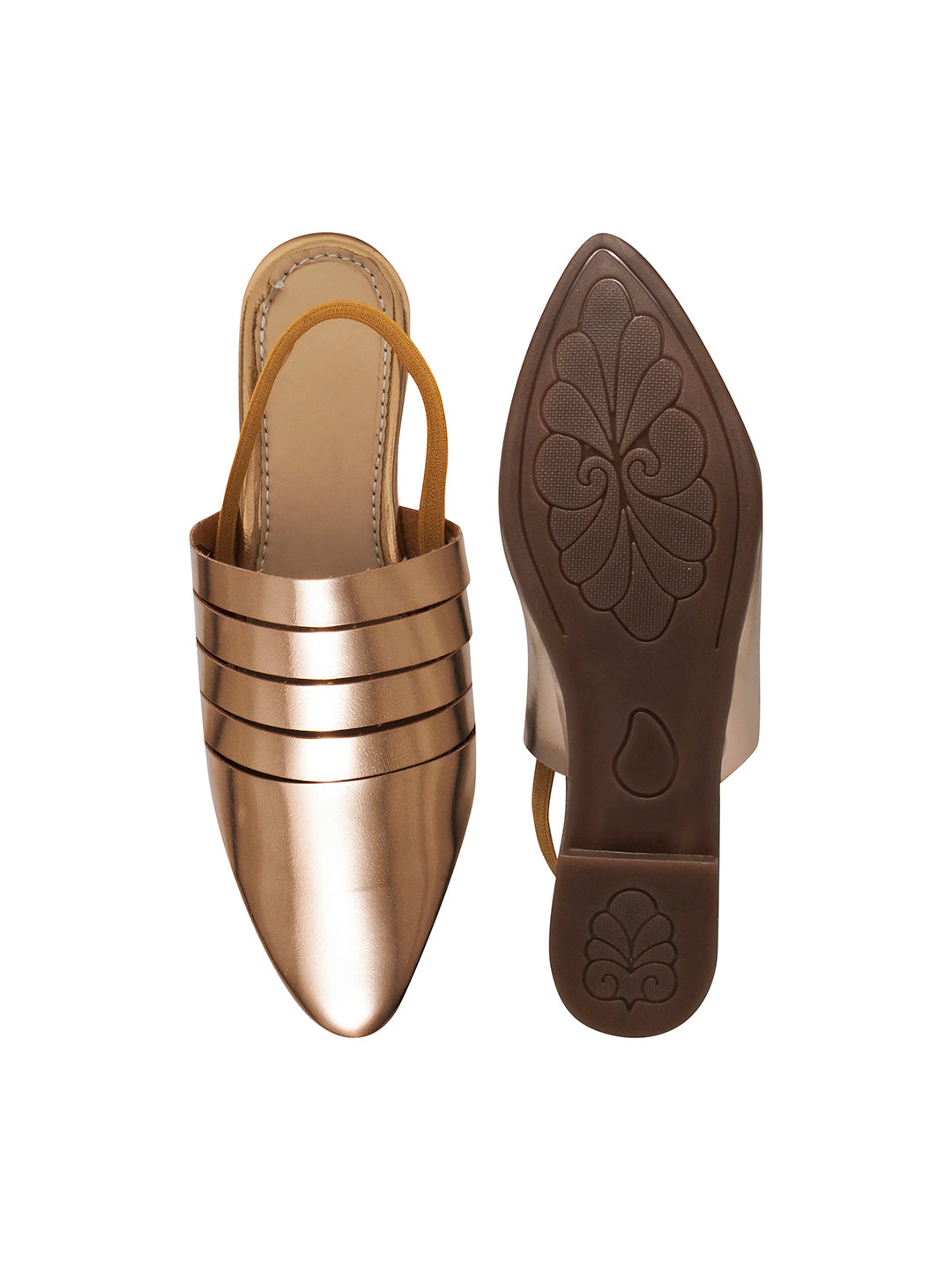 Upgrade your everyday and party looks with these metallic pointed-toe mule flats. Designed with a sleek slingback fit and glossy finish, they offer the perfect balance of comfort, elegance, and modern style—ideal for workdays, brunches, and festive evenings.
