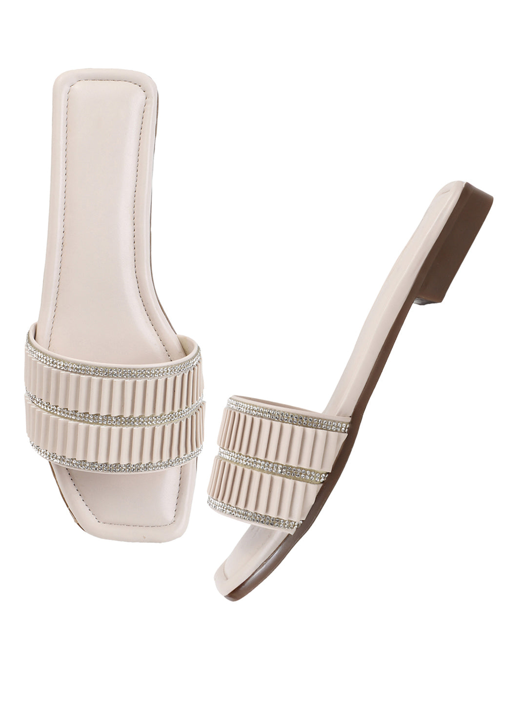 TRYME Trendy Square Toe Slip-on Flat Sandals For Women And Girls