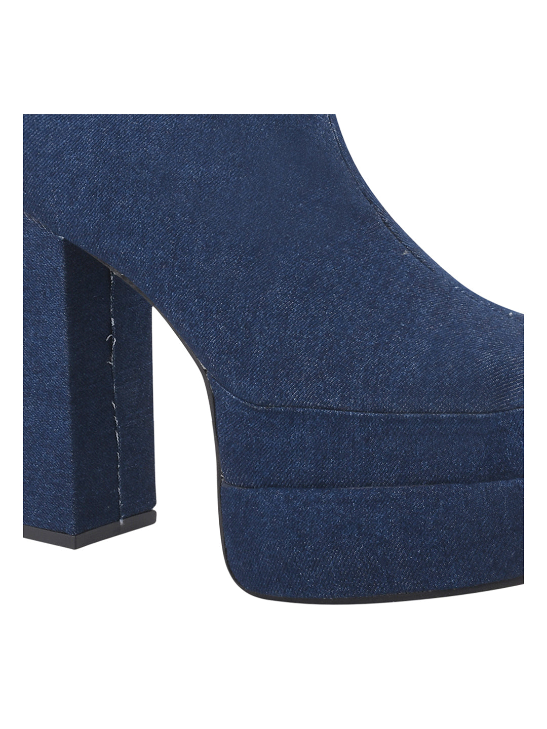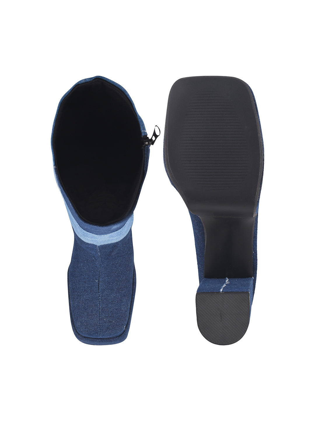 TRYME Women's Colourblock Denim Below Knee Length Block Heeled Boots