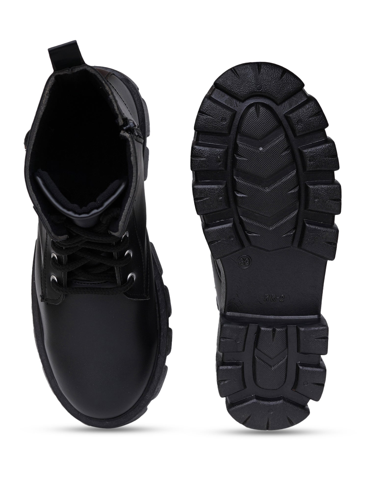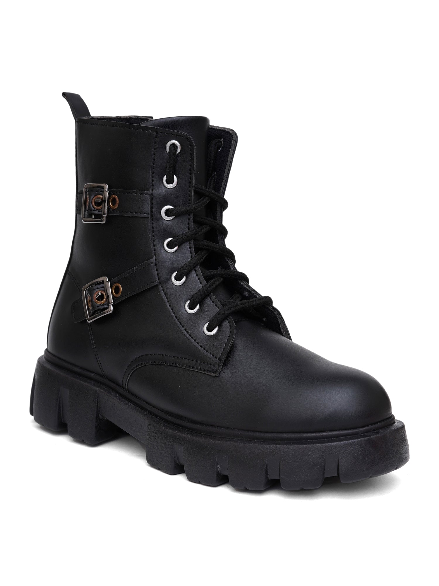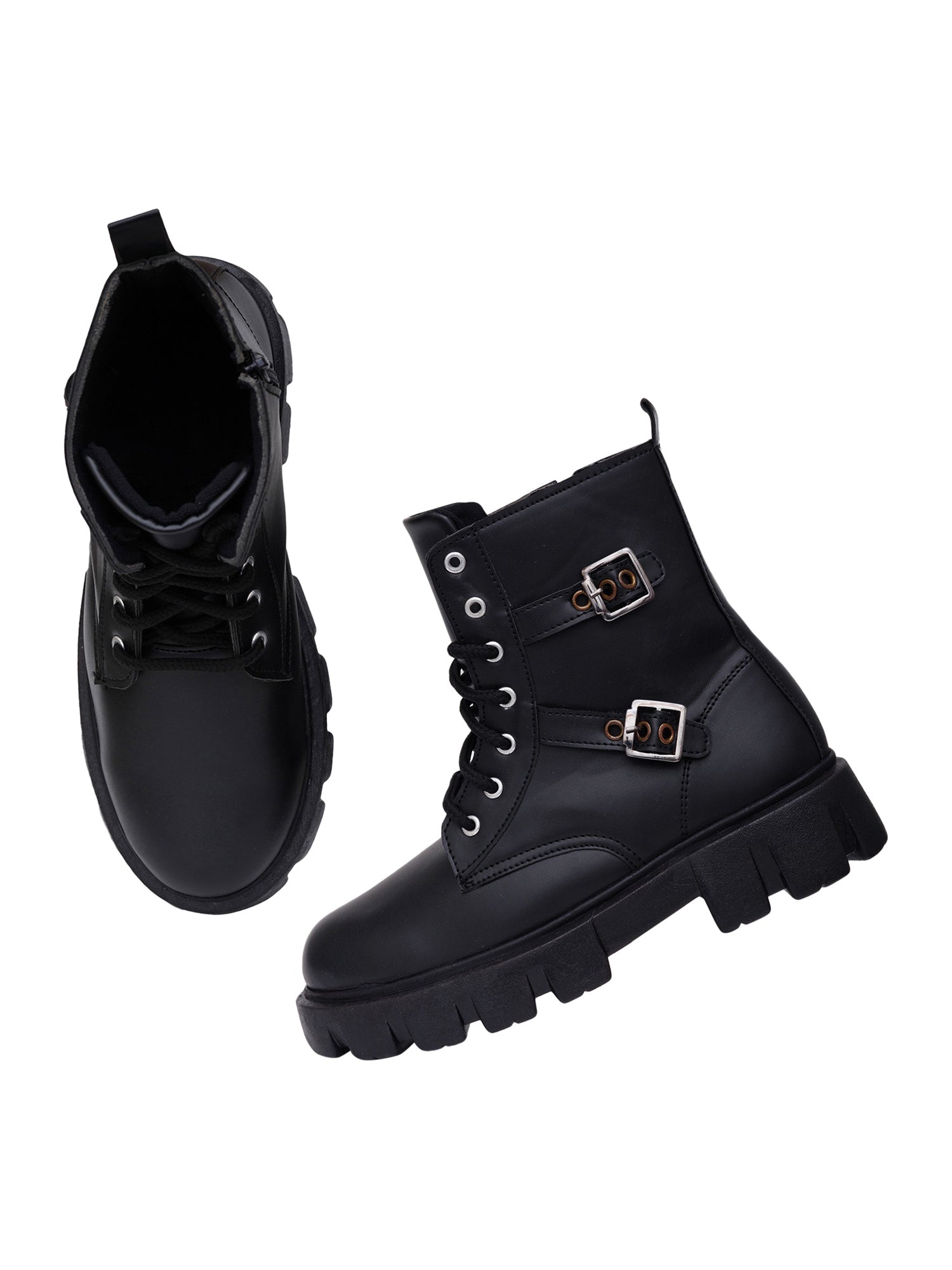 Chunky Sole Ankle Boots with Lace-Up and Buckle for Women